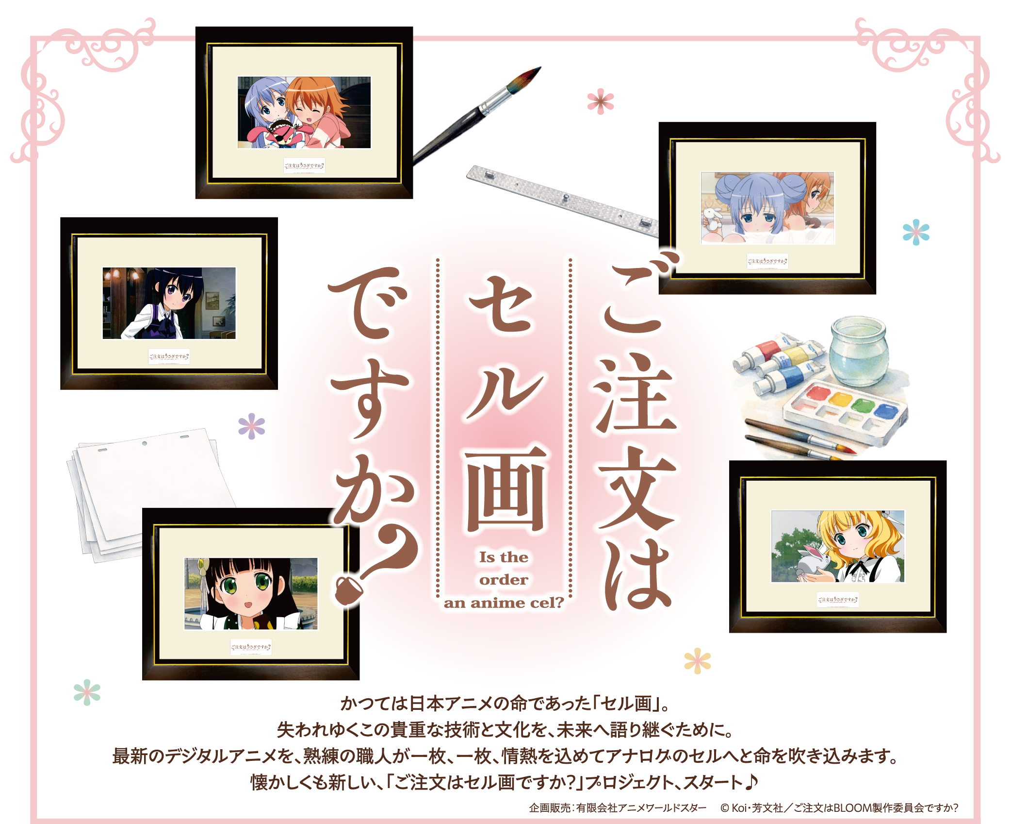 その文化の保存と継承のため、アニメ「ごちうさ」を手塗りのセル画にしてお届けいたします。